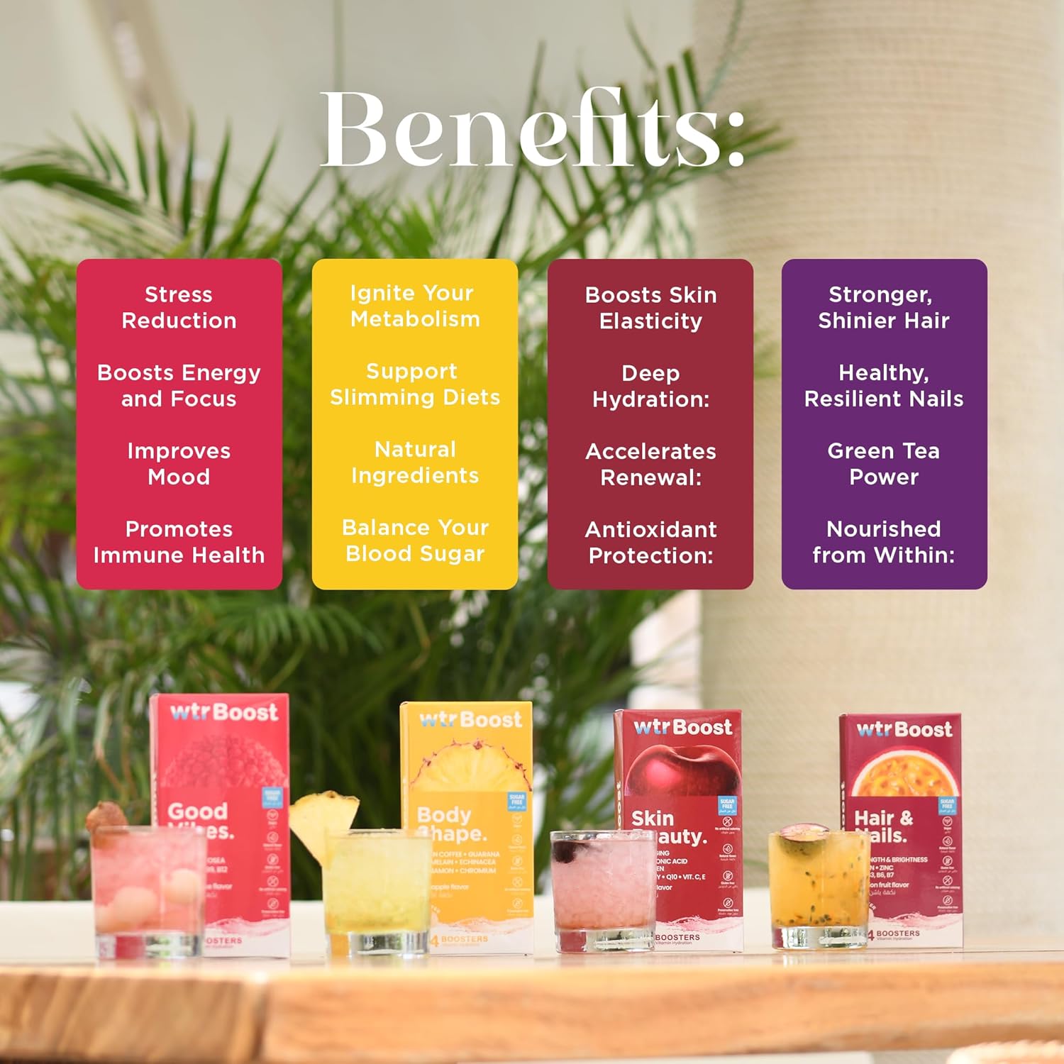 All boosters are sugar-free, gluten-free, and suitable for daily use.