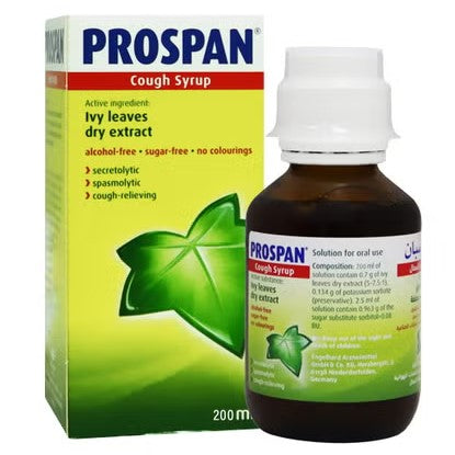 Prospan Cough Syrup 200 mL is formulated to effectively relieve coughs associated with respiratory tract irritations. Its natural extract supports airway clearance and soothes irritated mucous membranes, promoting easier breathing. Suitable for adults and children, Prospan provides gentle yet efficient symptomatic relief, making it a trusted choice for respiratory comfort.