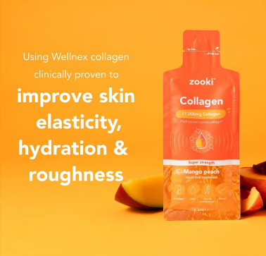 Zooki Super Strength Marine Collagen 11000mg Mango Peach Flavor Liquid Sachets 18.5ml, Pack of 14's