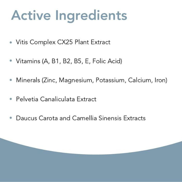 - VITIS COMPLEX CX25 – Patented blend of 25 botanical and marine extracts