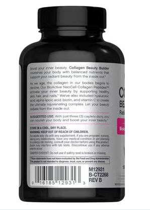 NeoCell Collagen Beauty Builder Tablets combine collagen peptides with hyaluronic acid and biotin to support skin hydration, elasticity, and overall radiance. This formula helps maintain youthful skin by promoting collagen synthesis and moisture retention. With 150 tablets per pack, it offers a convenient daily supplement to enhance your skin’s natural glow and resilience over time.
