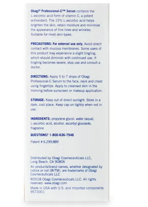 - Apply 5-7 drops of Obagi Professional-C Antioxidant Vitamin C Face Serum in the morning after cleansing and toning, before moisturizer